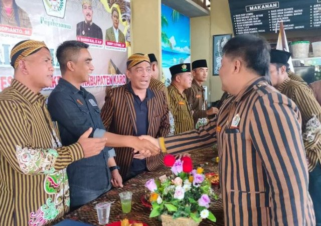 KARO - Wakil Bupati Karo Theopilus Ginting hadiri acara Tepung Tawar sekaligus Njunjungken Beras Piher Kepada Calon Jemaah Haji Kabupaten Karo yang digelar di Aula Kantor Bupati Karo, Selasa, (23/05/2023).